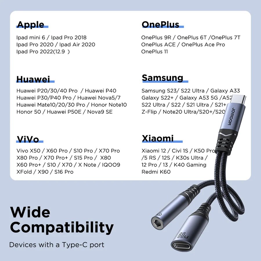 Joyroom SY-C02 est un adaptateur 2-en-1 révolutionnaire, conçu pour les utilisateurs qui souhaitent écouter de la musique et charger leur appareil en même temps. Ce petit adaptateur, mais avec un grand potentiel, équipé d’un connecteur d’entrée USB-C et d’une prise jack 3,5mm, change la façon dont vous utilisez votre smartphone ou votre tablette.