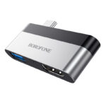 Le Borofone DH2 est un adaptateur multifonction conçu pour étendre la connectivité de vos appareils équipés de ports USB-C. Il permet de connecter un ordinateur portable ou un smartphone à un téléviseur ou un projecteur via HDMI, tout en offrant un port USB 3.0 pour connecter des périphériques externes tels que des clés USB ou des disques durs.