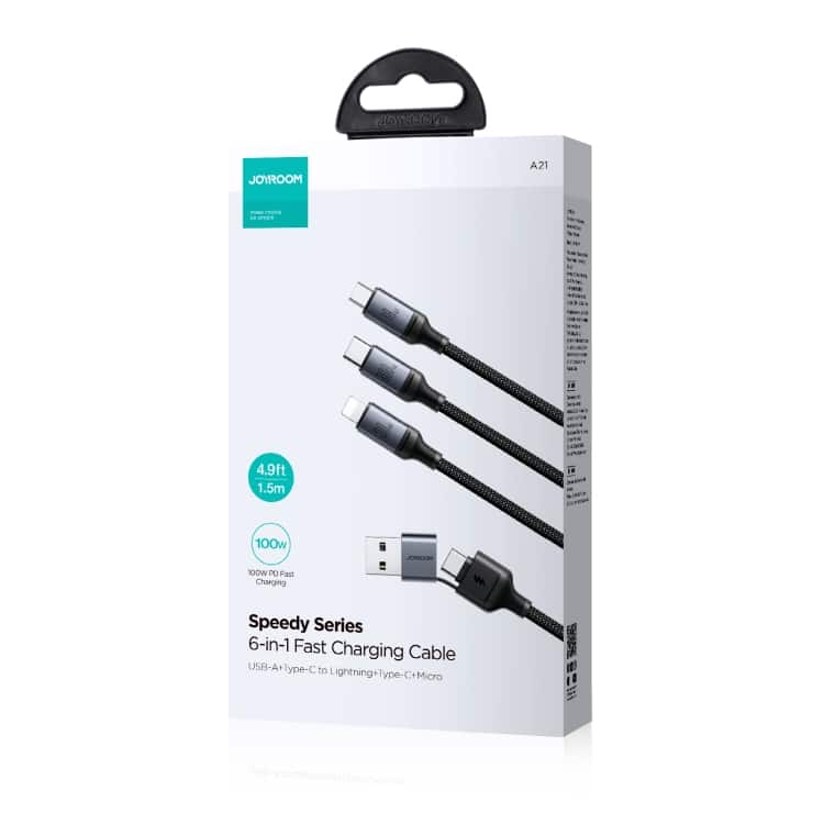 Câble de charge A21 – USB+Type-C vers iP+Type-C+Micro USB JOYROOM 3,5 A, Longueur : 1,5 m (Noir)