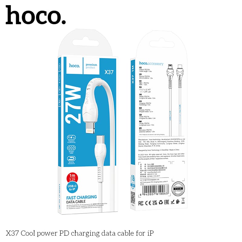 e câble Hoco X37 est la solution parfaite pour charger et synchroniser vos appareils Apple avec une connexion Lightning. Conçu avec la dernière technologie USB-C, ce câble vous offre une charge rapide et efficace allant jusqu’à 27 watts.