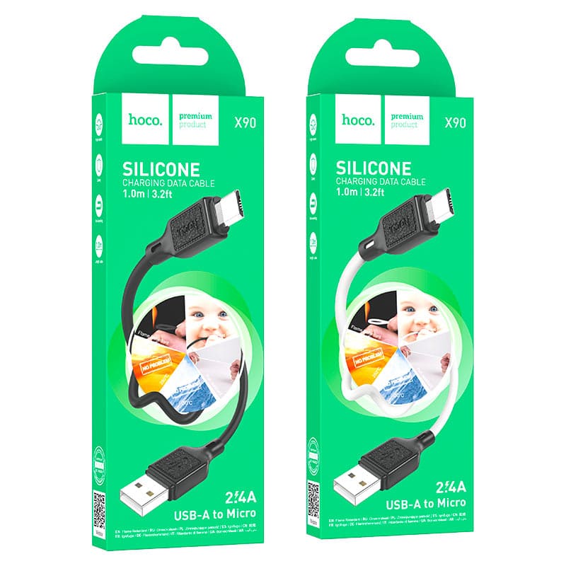 X90 Cool, câble de données de charge USB vers Micro-USB, courant jusqu’à 2,4 A, gaine en silicone, longueur – 1 m