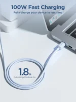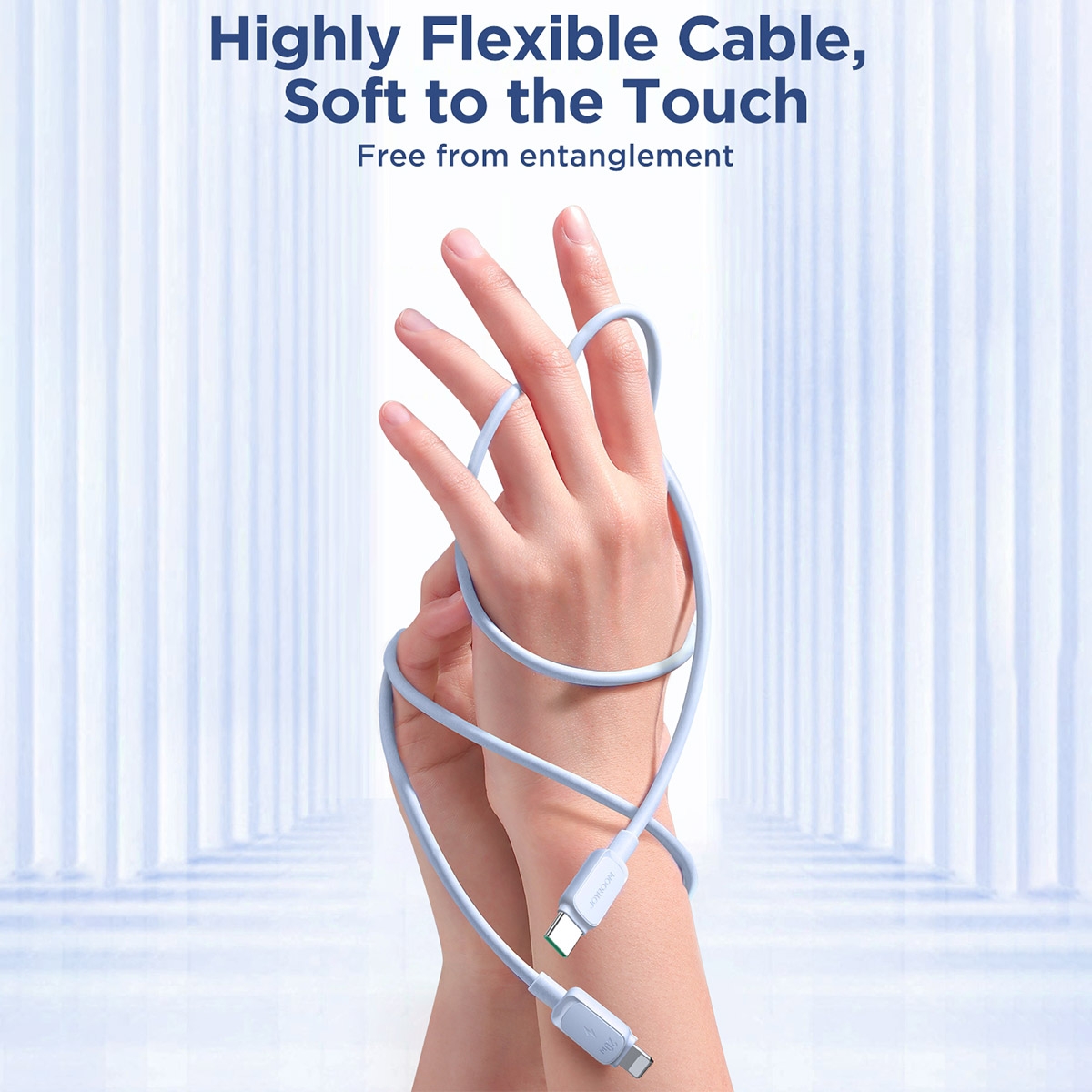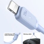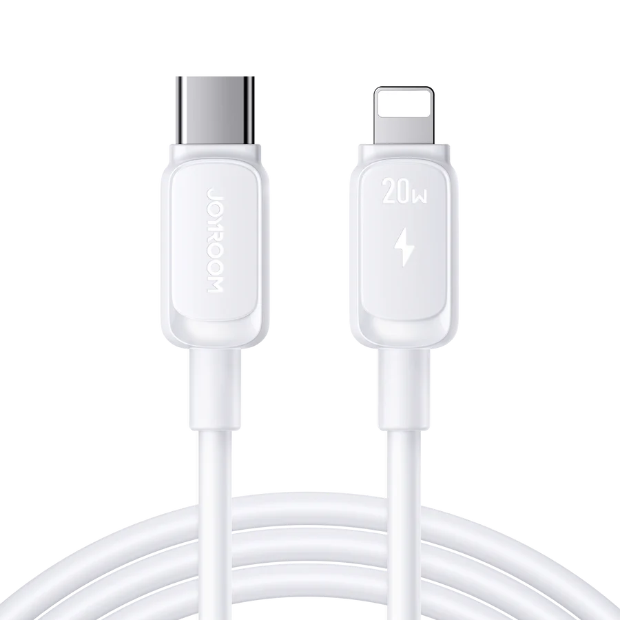 USB C – Câble Lightning d’une puissance allant jusqu’à 20W et d’une longueur de 1,2 m – Joyroom S-CL020A14 – violet Votre iPhone a-t-il besoin d’être rechargé d’urgence ? Choisissez le câble Joyroom USB C – Lightning de la série S-CL020A14. Il peut alimenter des appareils mobiles jusqu’à 20 W, ce qui permet de charger facilement votre smartphone ou votre tablette. Le câble Joyroom se distingue des autres câbles du marché par son extraordinaire durabilité. Grâce à la tresse en silicone, il restera longtemps dans sa forme parfaite. Vous n’avez pas à vous soucier de la casse ou de la fissuration. C’est aussi un bon gadget si vous vous souciez du transfert rapide des données. La vitesse de transmission des données peut atteindre 480 Mbps, ils assurent une transmission rapide et fiable des informations. Les avantages les plus importants du câble USB C – Lightning 20W Joyroom S-CL020A14 : Il chargera vos appareils mobiles en un rien de temps. Le câble Joyroom peut charger jusqu’à 20W Il est compatible avec tous les appareils Apple dotés d’un connecteur Lightning. Vous pouvez charger votre iPhone ou iPad avec celui-ci Il restera en forme pendant longtemps. Grâce à la tresse en silicone, il ne se cassera pas et ne se pliera pas, il a une excellente résistance à la fissuration Transfère les données rapidement et sans interruption. Il a une vitesse de transfert de données élevée – 480 Mbps Son utilisation est confortable dans n’importe quel endroit : à table, sur le canapé ou au travail. Le câble a une longueur pratique de 1,2 m Spécifications : Fabricant : Joyroom Modèle : S-CL020A14 Connecteurs : USB-C Lightning Fonctions prises en charge : charge, transmission de données Puissance : jusqu’à 20W Longueur du câble : 1,2 m Vitesse de transfert de données : 480Mbps Matériau : TPE Couleur violette