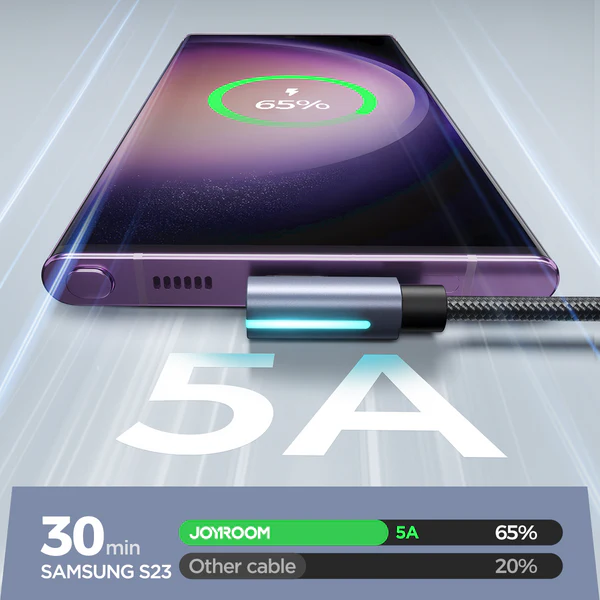 Le Joyroom S-CC100A17 est un câble USB-C vers USB-C capable de supporter une puissance de 100W (20V⎓5A) pour une charge ultra-rapide. Il est compatible avec Power Delivery 3.0, QC 3.0, et d’autres protocoles de charge rapide. Avec une vitesse de transfert de 480 Mbps, il est idéal pour charger des appareils comme des MacBooks, des smartphones Android, et des tablettes. Son design à angle droit (90°) permet une utilisation confortable pendant la charge. Le câble est fabriqué en nylon tressé durable et dispose de connecteurs en alliage d’aluminium pour une meilleure longévité. Disponibles en 1,2 m et 2 m.