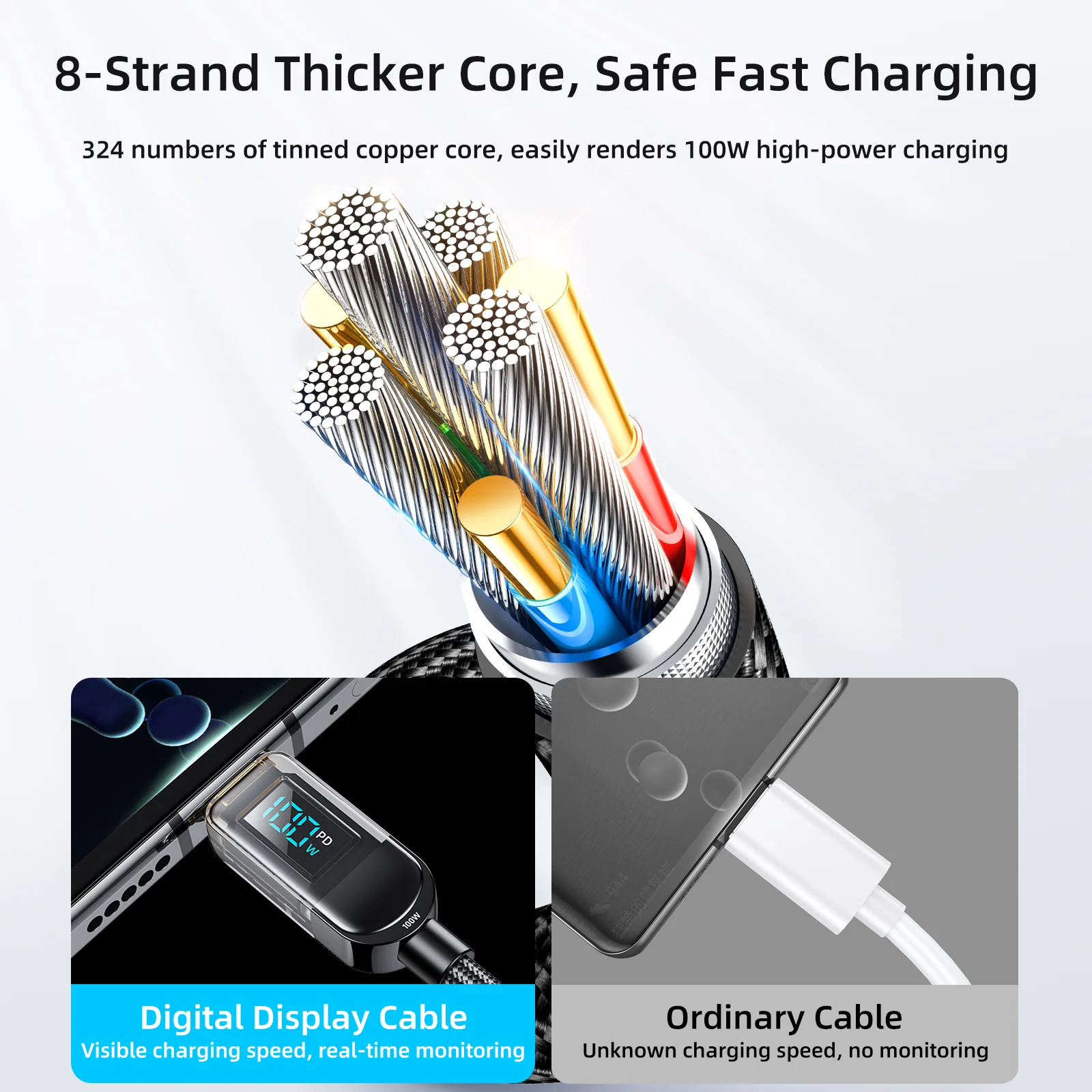 Affichage numérique : intégré à l’extrémité du câble, il indique en temps réel la puissance de charge, offrant une surveillance pratique.