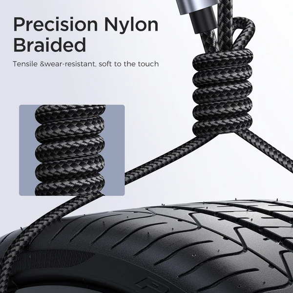 🧵 Conception robuste : Câble tressé en nylon haute résistance, anti-usure et anti-emmêlement