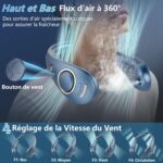 • Angle réglable et ventilateur de cou pliable : le ventilateur de cou portable peut être plié et rangé, compact et léger, ce qui le rend plus pratique à transporter. Très pratique pour les voyages, les activités de plein air ou au quotidien. Le mini ventilateur de cou prend également en charge le réglage de l’angle pour que la direction du vent soit celle dont vous avez besoin. Vous pouvez facilement régler l’angle le plus confortable et profiter de la fraîcheur. Convient à tous les âges