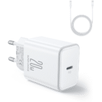 Chargeur d’alimentation Joyroom JR-TCF06 avec connecteur USB-C, technologie Power Delivery et jusqu’à 20 watts de puissance + câble USB-C – blanc