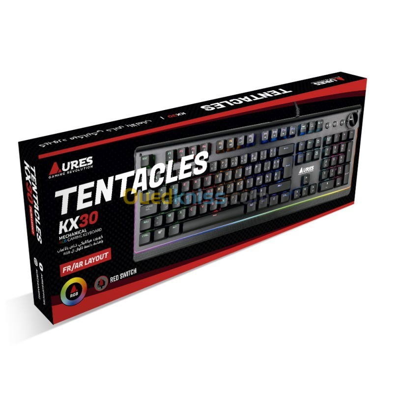 CLAVIER AURES TENTACLES KX30 MECHANIC RED SW RGB CLAVIER GAMING TENTACLES KX30 Clavier mécanique avec RVB conçu pour les joueurs. Chaque touche prend en charge plus de 5 millions de frappes.
