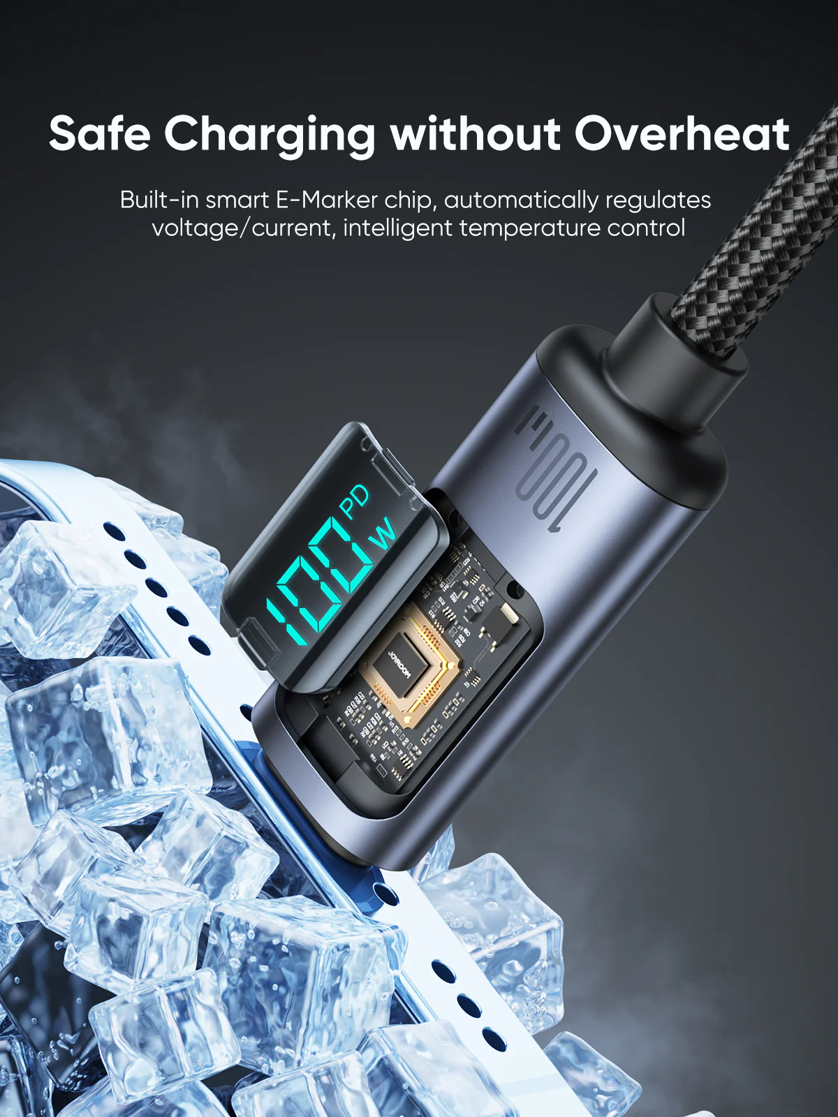 - Écran LED transparent : La prise du câble Joyroom est équipée d’un écran LED transparent qui vous permet de suivre les paramètres de charge de votre iPhone.