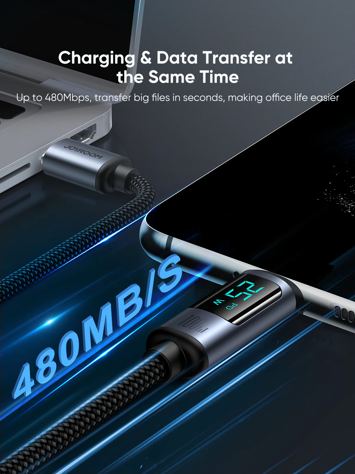 JOYROOM S-AC066A16 Prism Series 66W USB-A vers Affichage numérique Type-C Câble de données de charge rapide 1,2 m
