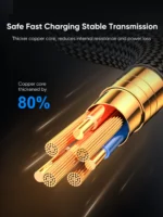 - Écran LED transparent : La prise du câble Joyroom est équipée d’un écran LED transparent qui vous permet de suivre les paramètres de charge de votre iPhone.