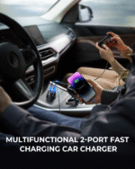 Le produit est un chargeur de voiture à affichage numérique de 53W. Il dispose de ports de sortie doubles et QC3.0 et fournit une charge rapide pour 2 appareils simultanément. Les protocoles de charge ultra-rapide PD3.0, QC3.0, PPS, Samsung AFC et Huawei FCP sont pris en charge. Il est conçu avec un affichage numérique LED pour surveiller la tension de la batterie de la voiture en temps réel. Avec une puce de reconnaissance intelligente et une bonne distribution du courant, le produit est inoffensif pour votre téléphone et votre voiture. Son matériau PC ignifuge assure une charge plus sûre avec moins de chaleur.