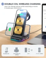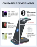 - Charge simultanée pour téléphone, montre et écouteurs.