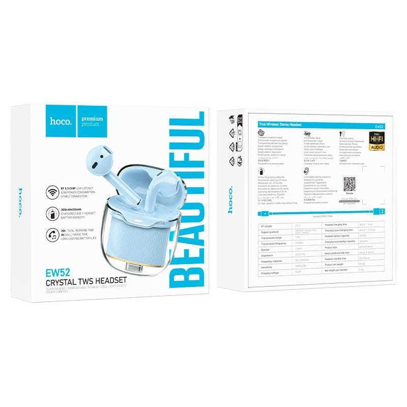 🎧 Hoco EW52 Lilly – Écouteurs sans fil TWS Bluetooth 5.3 avec boîtier transparent 🌸🔋