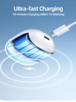- Charge Ultra-Rapide: La charge ultra-rapide vous offre une heure d’écoute avec seulement 10 minutes de charge, assurant que la musique ne s’arrête jamais, même lorsque le temps est limité.