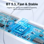 - Longue durée de vie de la batterie: Profitez d’un temps d’écoute total de jusqu’à 21 heures, avec jusqu’à 6 heures de lecture sur une seule charge. La puce BT 5.3 assure une connexion rapide et continue, tandis que la capacité anti-interférence améliorée garantit une expérience sans interruptions.