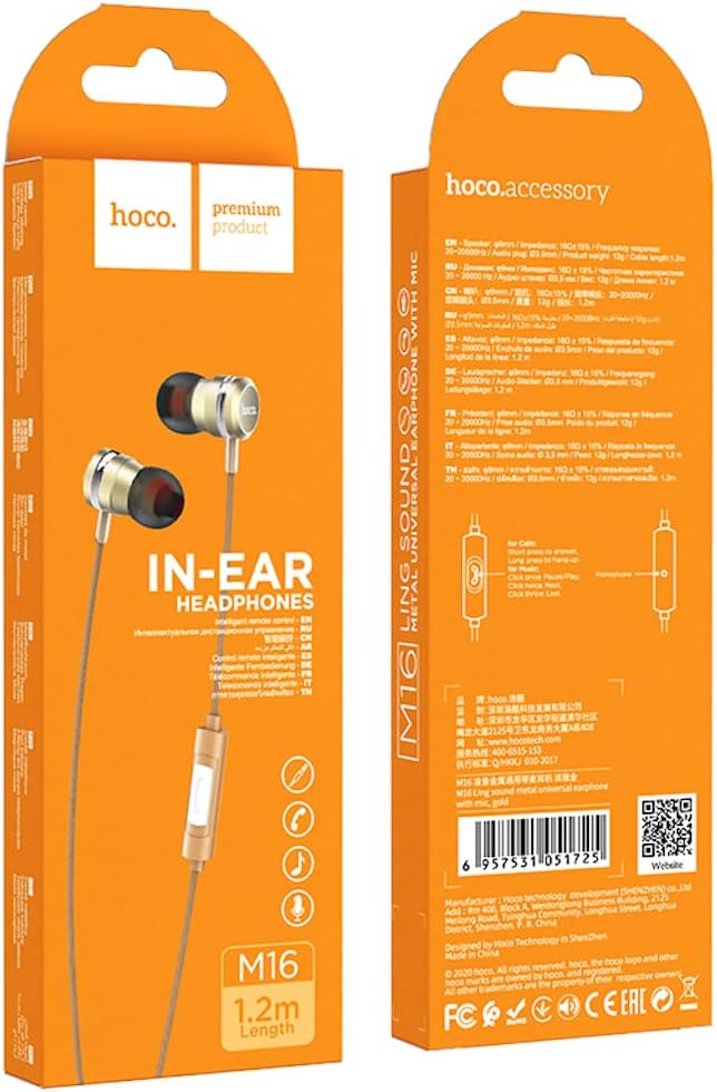Le Hoco M16 Ling Sound est un kit mains libres filaire de type intra-auriculaire, conçu pour offrir une expérience audio de qualité avec un design élégant et une compatibilité étendue
