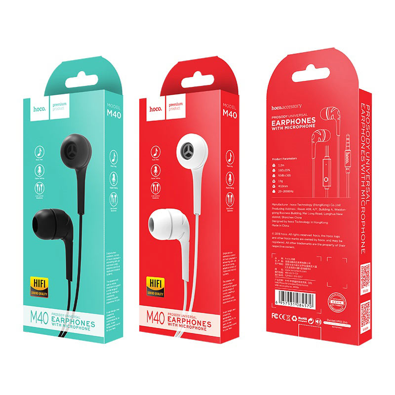 Le HOCO M40 Prosody est une paire d’écouteurs filaires intra-auriculaires, conçue pour offrir une expérience audio de qualité avec un design simple et fonctionnel. Doté d’un microphone intégré et d’une commande à un bouton, il est compatible avec une large gamme d’appareils grâce à son connecteur jack 3,5 mm.