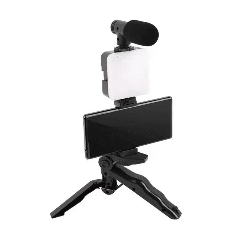 Kit de fabrication de vidéos en plastique noir AY-49c vlogging caméra avec micro Kit de trépied, pour la photographie