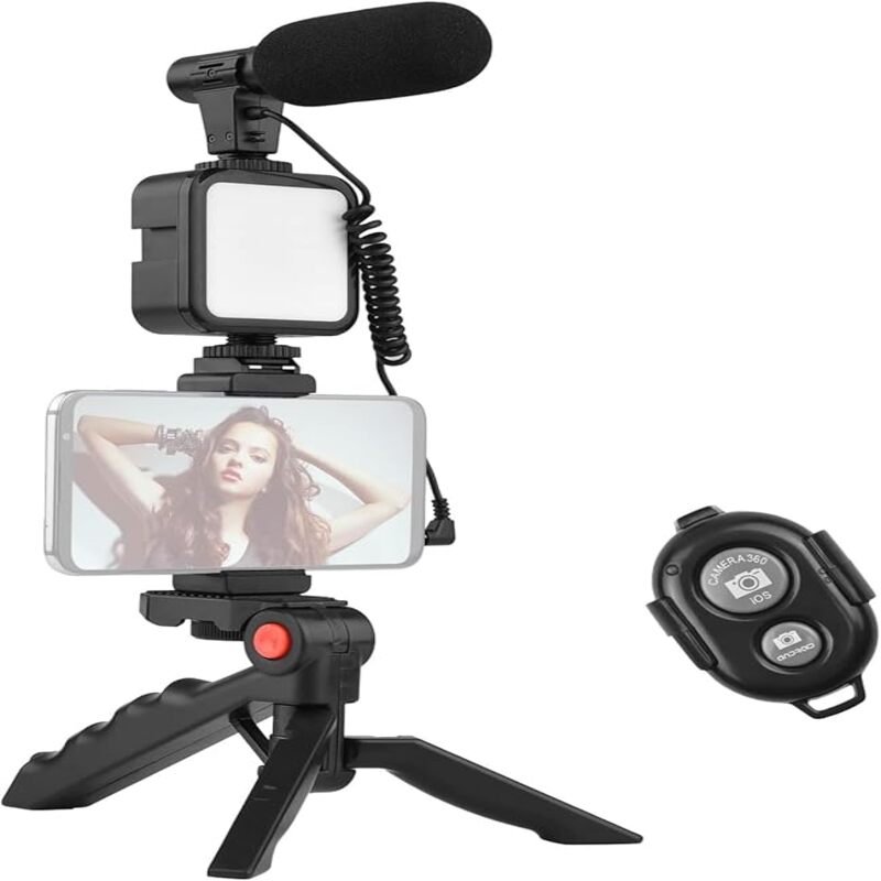 KIT DE VLOGGING POUR SMARTPHONE, ÉQUIPEMENT D’ENREGISTREMENT VIDÉO AVEC TRÉPIED, OBTURATEUR LUMINEUX LED POUR APPAREIL PHOTO, YOUTUBE
