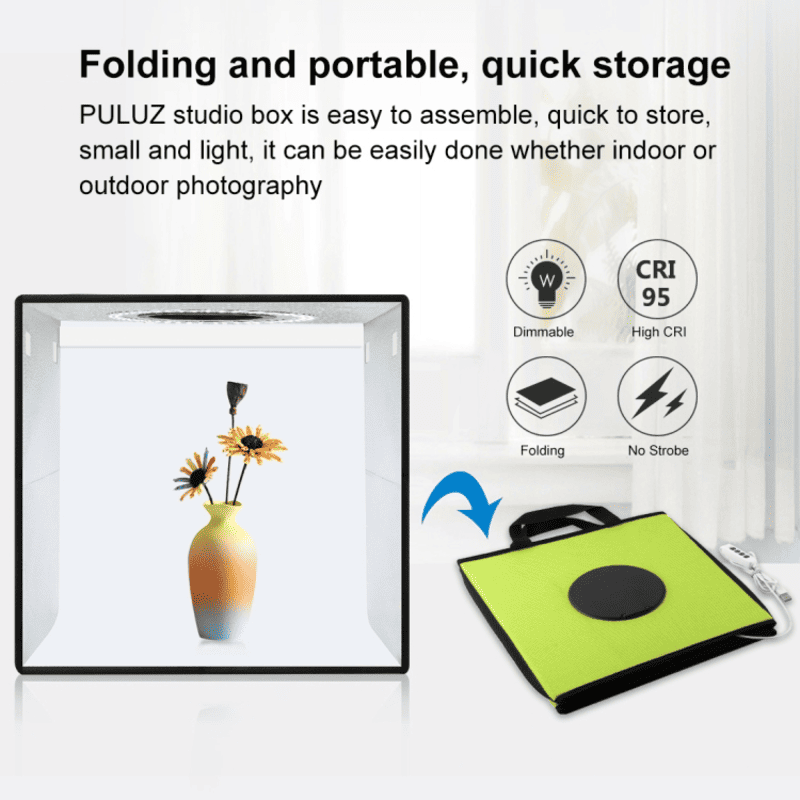 de la Studio Box 1. La boîte lumineuse photographique est conçue pour les petits articles des amateurs de photographie, des artisans, des artistes, des vendeurs etsy et autres vendeurs en ligne, des professionnels et des clients de la publicité de produits.