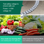 5. Adoptez le tableau lumineux annulaire de température de couleur CRI97, le tissu réfléchissant en film argenté particulaire intégré à l’intérieur diffuse la lumière uniformément et évite la vignette.