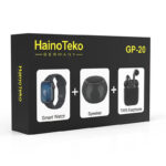 Montre Connectée Haino Teko GP 20 + Ecouteurs + Enceinte – Écran : HD – Système d’exploitation : Android, IOS – Connectivité : Bluetooth – Appel Bluetooth et notification intelligente – Moniteur de fréquence cardiaque, Moniteur de sommeil, Assistant vocal – Surveillance de la pression atmosphérique – Processeur puissant et menu totalement fluide – 3 Ceintures en silicone – chargeur sans fil – Couleur : Noir