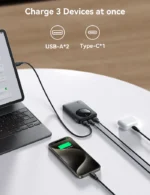 Charge simultanée : 3 ports de sortie pour charger jusqu’à 3 appareils en même temps.