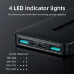 Double Port de Sortie: Avec sa sortie double port, ce power bank intelligent peut charger deux appareils simultanément, ce qui en fait un choix pratique pour les utilisateurs multi-appareils.