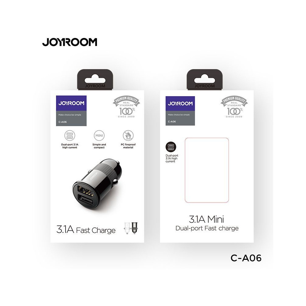 Joyroom C-A06 Chargeur de voiture à 2 ports 3.1A Noir