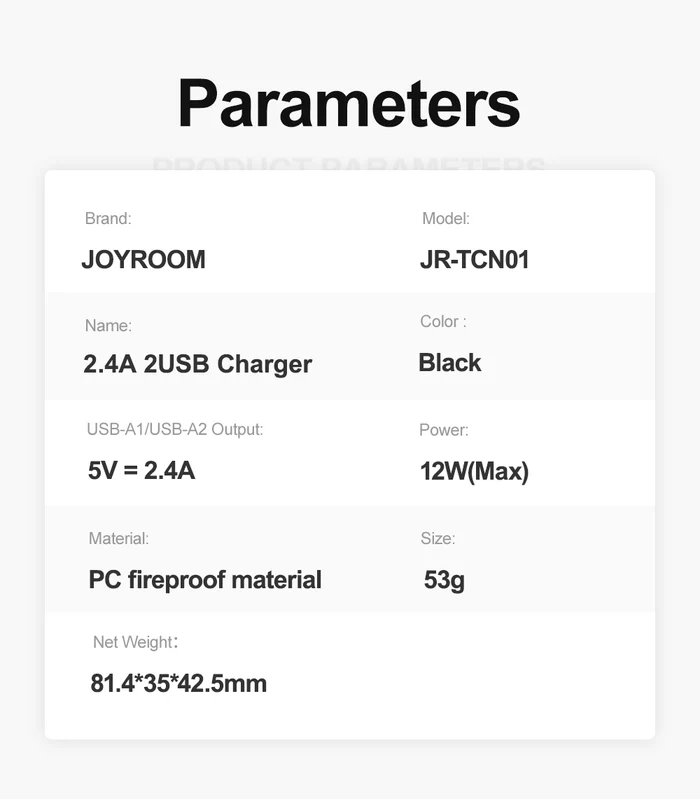 JR-TCN01 Chargeur 2.4A 2USB – Noir