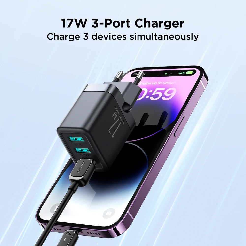 JR-TCN02 3.4A 3USB Chargeur-Noir EU/UK/US