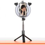 - Rétractable, facile à transporter, diffusion en direct, avec selfie stick, trépied, lumière d’appoint.