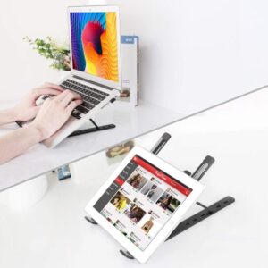 Supports robustes et stables : Fabriqué en acier inoxydable au lieu de plastique, le support pour ordinateur portable Elekin peut supporter 25 kg. Au bas du support d’ordinateur portable, il y a un coussin antidérapant en silicone, qui empêche l’ordinateur portable de bouger lorsque vous tapez.
