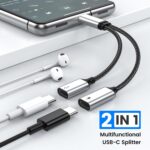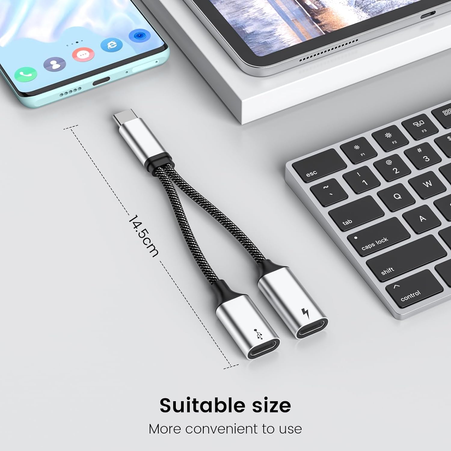 Câble hub USB C de type C vers double ports pour ordinateur portable, PC, souris et disques durs flash.