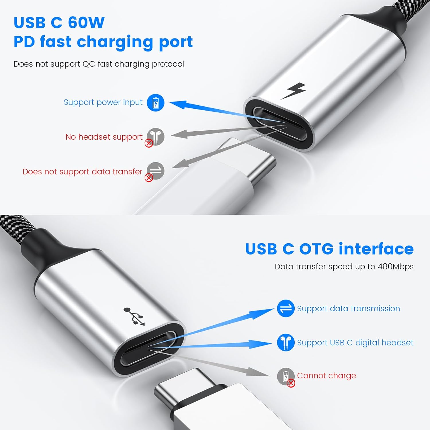 Remarque : Le port USB-C femelle ne supporte pas la charge, uniquement les appareils OTG