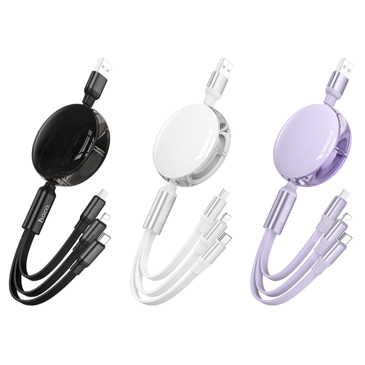 X78 2A Câble 3 en 1 USB to Micro-USB / Type-C / IP, conçus pour être compatibles avec une large gamme de dispositifs, tels que les smartphones, les tablettes, les appareils photo, les enceintes.